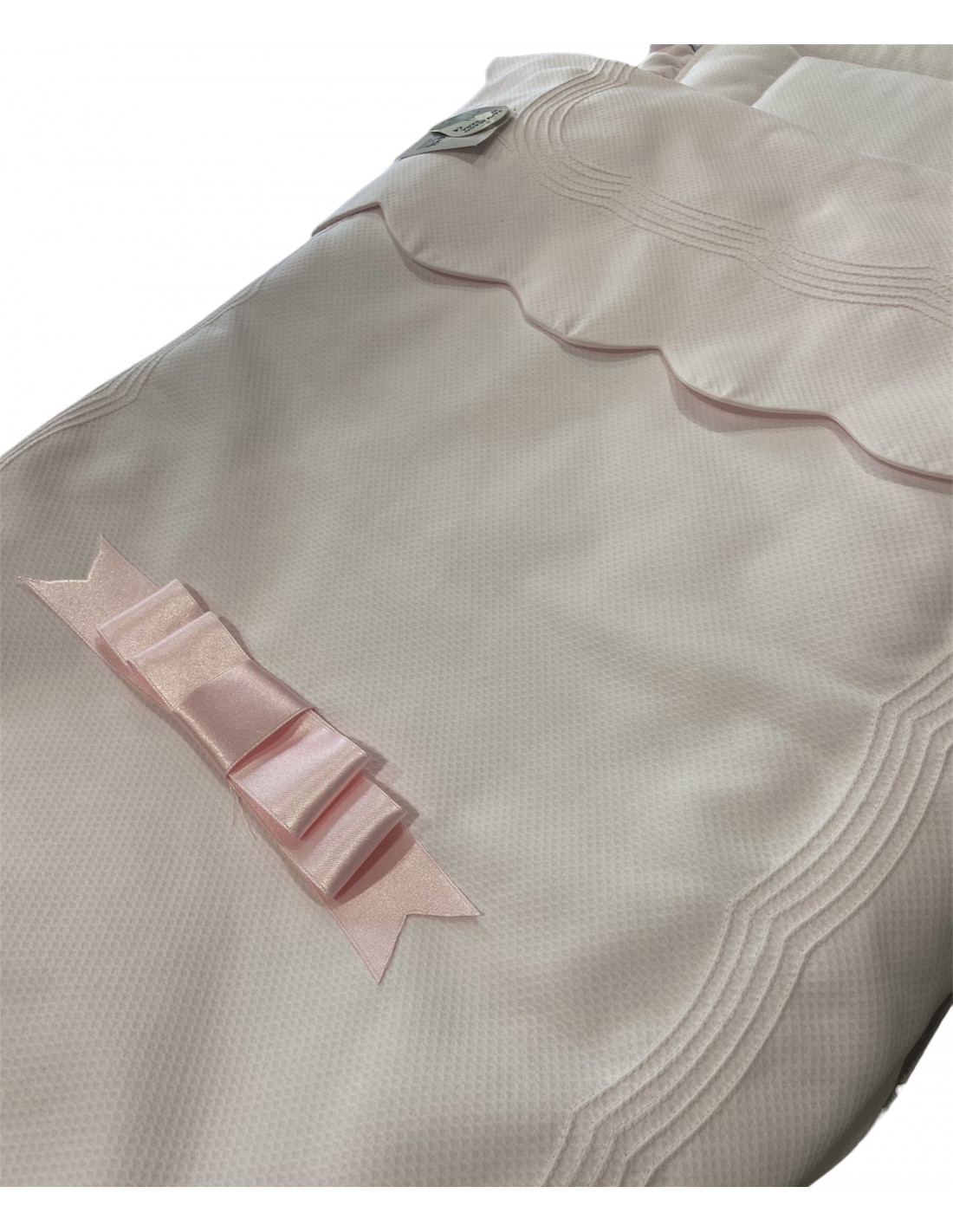SACO PARA CAPAZO DE PIQUÉ ROSA CON LAZO, COLCHONETA Y RELLENO NÓRDICO