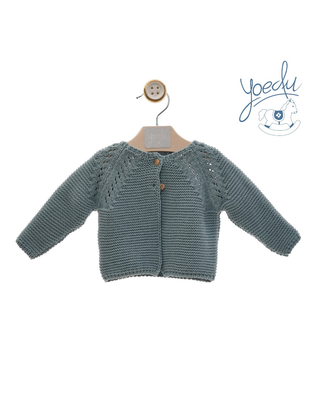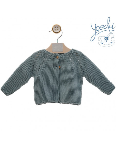 CHAQUETA LARGA PUNTO BOBO CALADOS