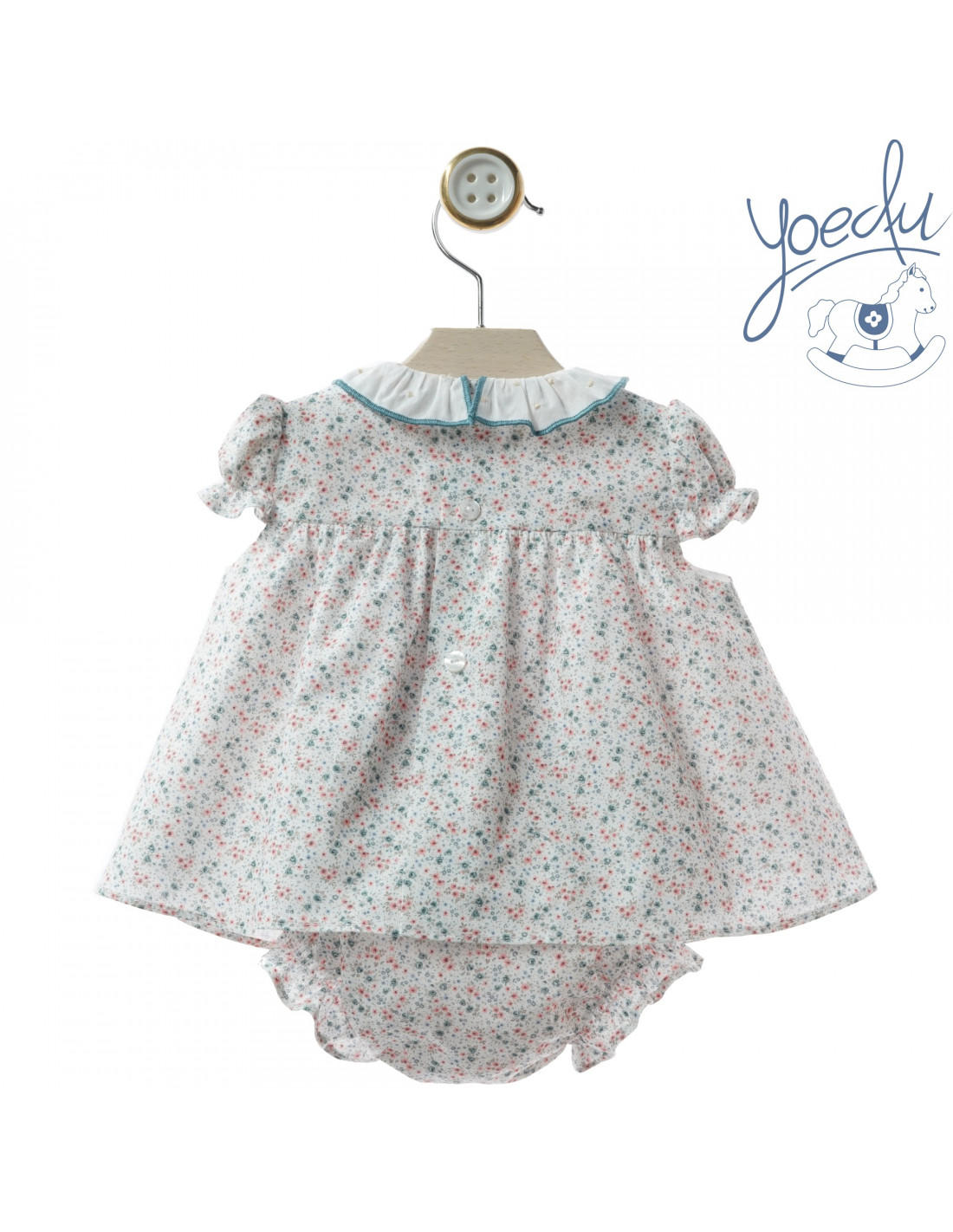 Vestido verano con braguita y capota en estampado flor liberty de la marca YOEDU