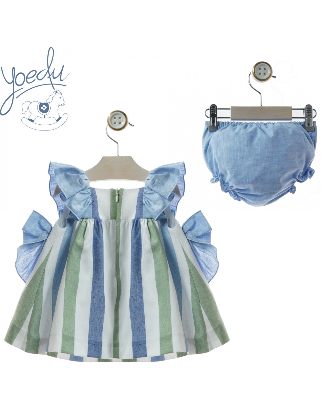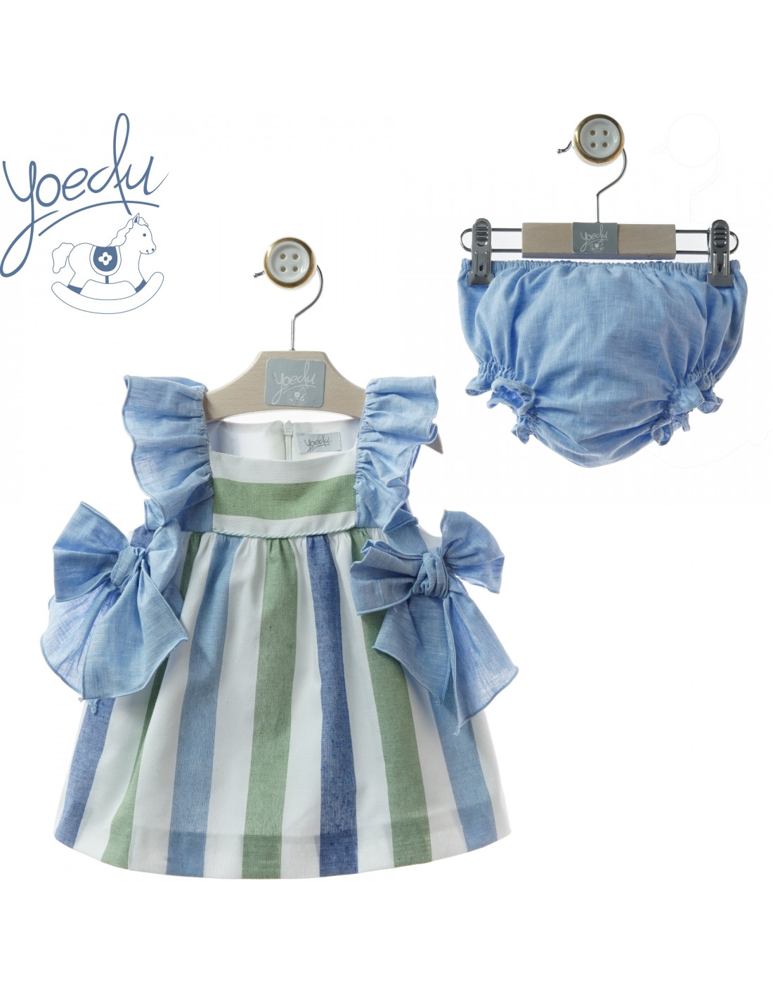 Vestido verano con braguita en rayas azul y verde y lazadas delanteras de la marca YOPEDU